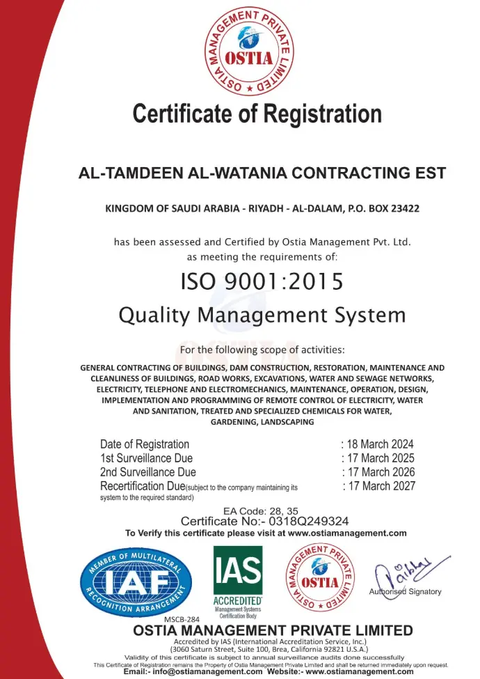 الجودة – الاحترافية – التكامل – السلامة – الابتكار – الوطنية.
